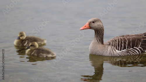 Fototapeta premium country goose and ducklings