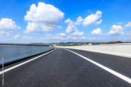© ABCDstock, Fototapeta premium Country highway and blue sky with white clouds.