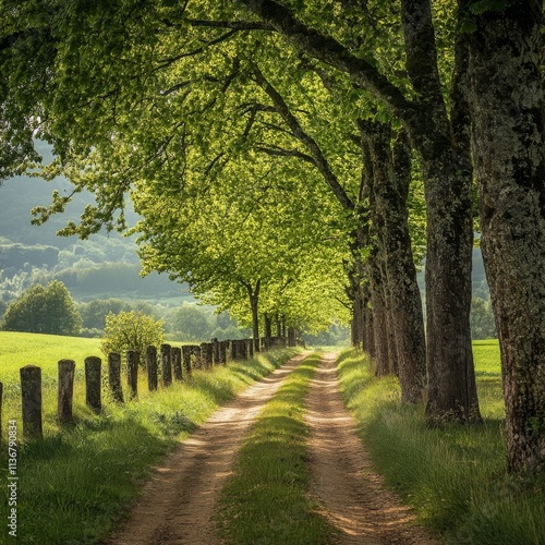 © Togrul, Fototapeta premium Country lane amidst woods and meadow