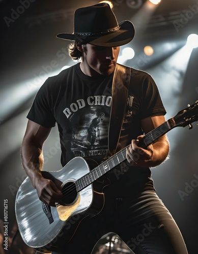 Obraz premium Country music singer on stage with his guitar