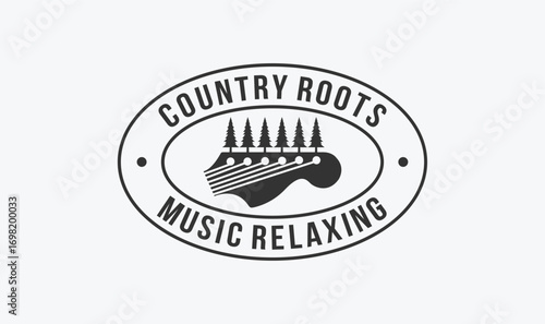 © Smart-Work, Fototapeta premium country musician stamp logo design with the guitar and tree element.