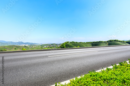 Fototapeta premium Country road and green mountains natural landscape under the blue sky
