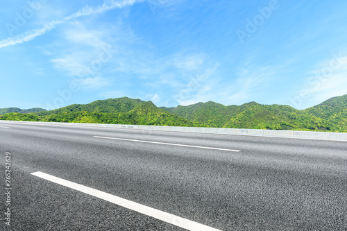 Fototapeta premium Country road and green mountains natural landscape under the blue sky