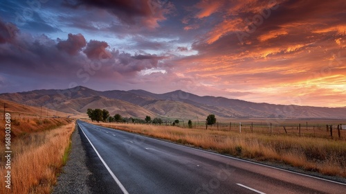 © Ocit, Naklejka premium Country Road At Sunset With Dramatic Sky