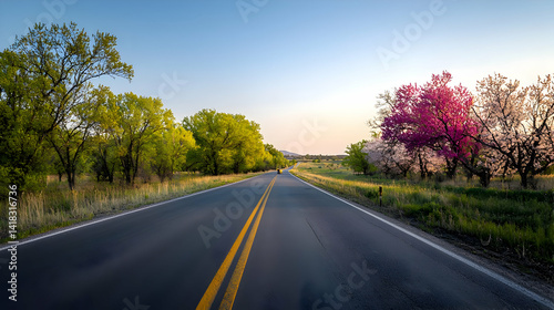 © predator, Fototapeta premium Country Road Blossoming Trees Springtime