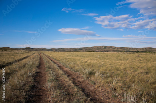 Obraz premium Country road. Dirt-track. Rural landscape. Steppe.