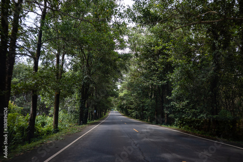 © Monthicha, Fototapeta premium country road, green trees tunnels