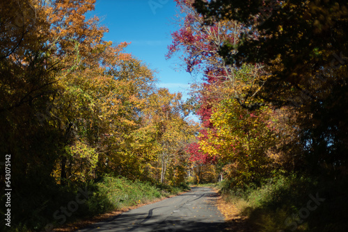 © PIERRE JEAN C, Fototapeta premium Country road in Connecticut Litchfield county with fall color colorful autumn foliage