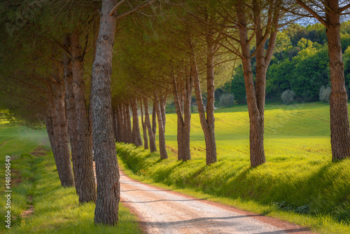 Naklejka premium Country road in Tuscany along the way for Volterra surrounded by pines.