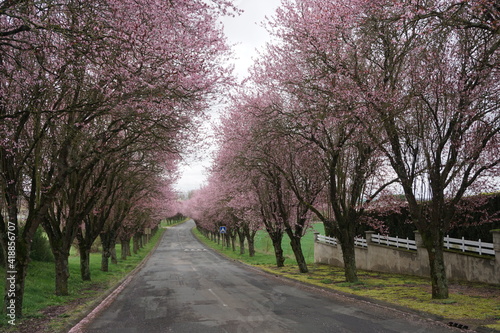 © poupine, Obraz premium country road lined up with blooming pink cherry trees