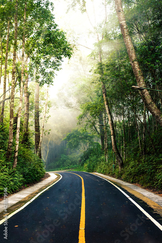 Obraz premium Country Road on the Mountain through the woods