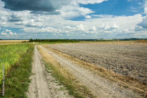 © darekb22, Obraz premium Country road, plowed field and clouds in the sky