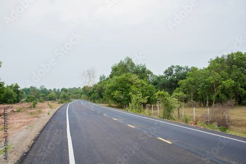 © Achira22, Fototapeta premium Country road running through tree alley.
