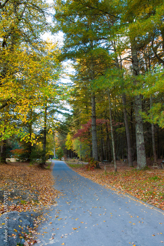 © Jo, Naklejka premium Country road surrounded by fall colors and leaves
