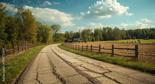 © AkuAku, Naklejka premium Country road symbolizing the contrast between vitality and decay