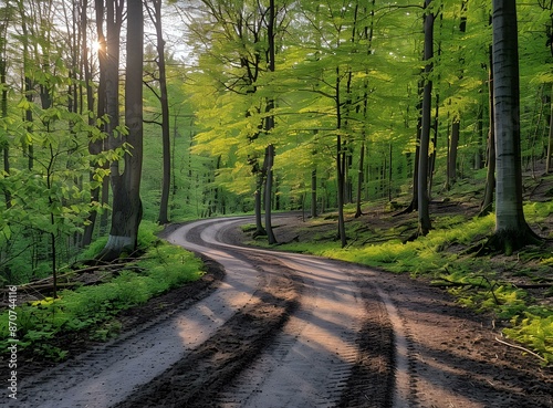 Obraz premium Country road through a lush green forest
