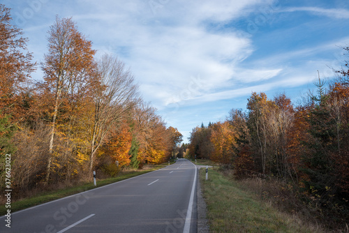 Fototapeta premium country road through autumnal forest