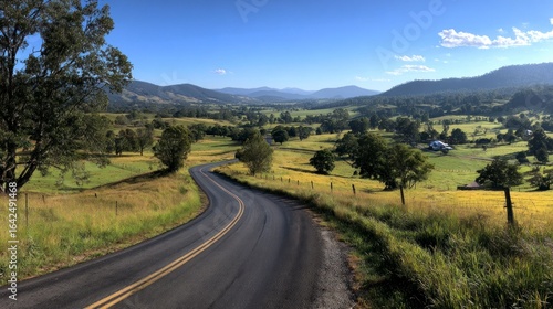 © irma graffity, Fototapeta premium Country road through scenic valley