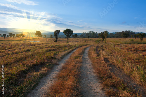 © psuksom, Fototapeta premium Country Road to Mountain blue sky background