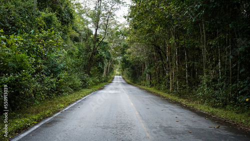Obraz premium Country roads with natural roadside trees make energy work well.