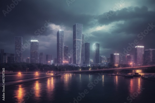 © SaysomphoneA, Fototapeta premium country skyline at night
