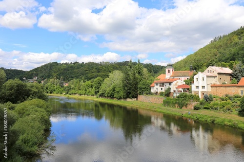 Fototapeta premium Countryside along River Berounka, central Bohemia, Czech Republic
