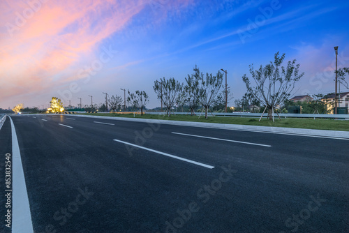 © ABCDstock, Fototapeta premium Countryside asphalt highway road and colorful sky clouds background