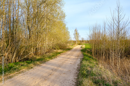 © Martins Vanags, Fototapeta premium countryside dirt road gravel in perspective in summer
