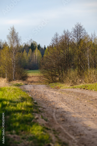© Martins Vanags, Fototapeta premium countryside dirt road gravel in perspective in summer