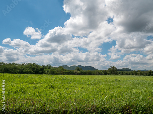 © BH007, Obraz premium countryside field with mountain and cloudy sky