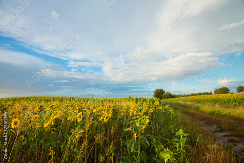 © aniad, Fototapeta premium Countryside field with sunflowers, Belgium