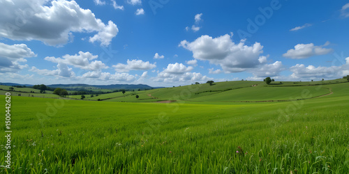 © Fikri Haikal, Obraz premium Countryside landscape with blue sky and green fields