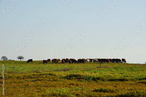 © foto4440, Obraz premium Countryside landscape with cows grazing, La Pampa, Argentina