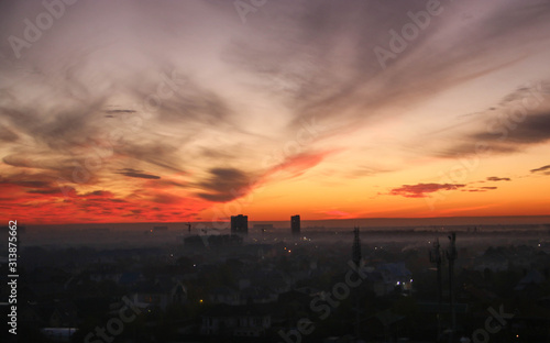 © Антонина Кузнецова, Fototapeta premium Countryside. Pink sky in the rays of the setting sun.