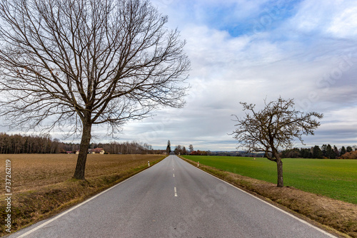 Fototapeta premium Countryside road in Europe. Early springtime.