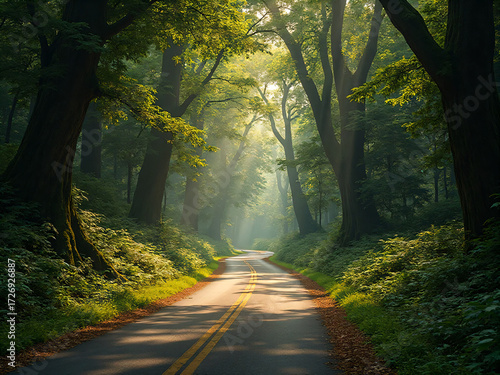Obraz premium Countryside Road Through Forest