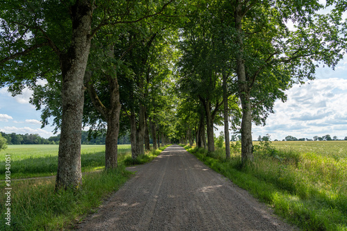 Fototapeta premium Countryside road with beautiful trees on both sides