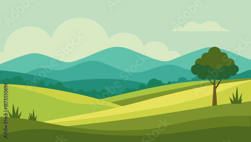 © Nayon Chandro Barmon, Obraz premium Countryside Rolling Hills Vector Illustration