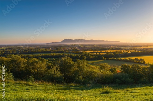 © vxnaghiyev, Obraz premium Countryside scenery featuring lush meadows and woodland. Premium quality image
