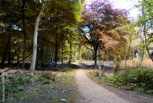 Naklejka premium Countryside walk with path winding through trees
