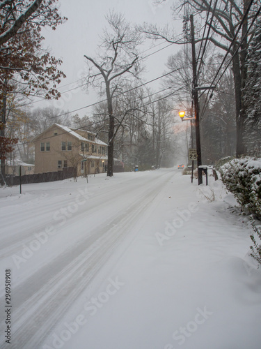 © Michele, Naklejka premium county road under the first snow of the season in November