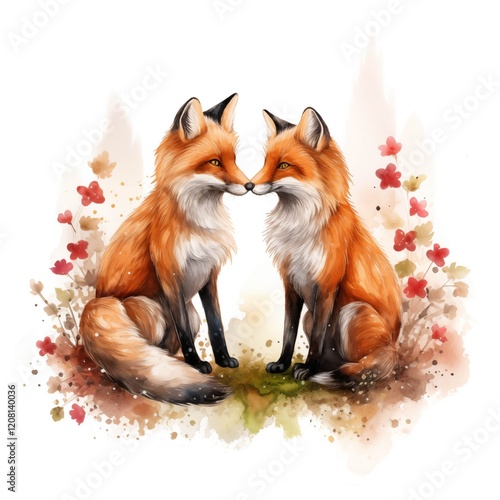© Studicon, Obraz premium Couple Animals clipart. Watercolor illustration. Illustrative clipart collection illustration