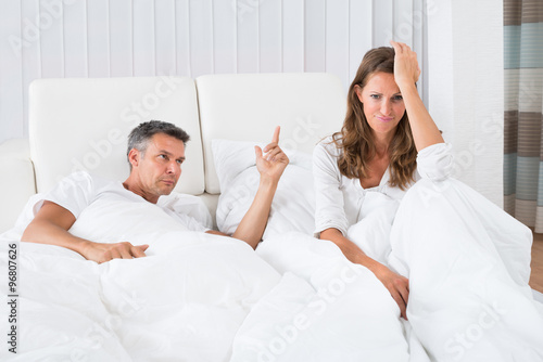 Fototapeta premium Couple Arguing In The Bedroom