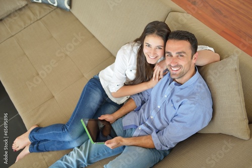 © .shock, Obraz premium couple at home using tablet computer