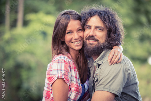 © alessandro, Fototapeta premium couple at the park with dog