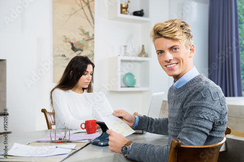 Fototapeta premium Couple Calculating Personal Finance At Home