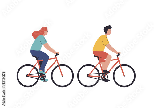 Fototapeta premium Couple Cycling Together, Flat Vector Illustration