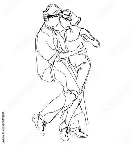© Nittanondo, Fototapeta premium Couple dancing closely together in black and white line art tango ballroom