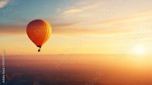 © Sarinrata, Obraz premium Couple Enjoying a Hot Air Balloon Ride at Sunset
