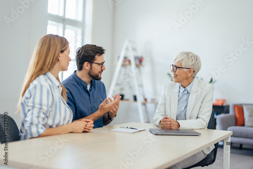 © bnenin, Obraz premium Couple explaining something to the insurance agent, at the office.